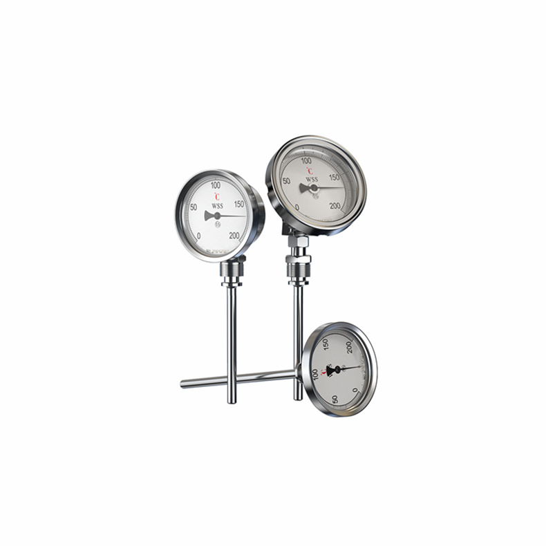 WSS型系列工業雙金屬溫度計是一種適合測量中、低溫 的現場檢測工業儀表。可直接測量氣體、液體的溫度,廣泛應 用于石油、化工、船舶、機械、醫藥、電力等行業,是玻璃 溫度計的替代產品。